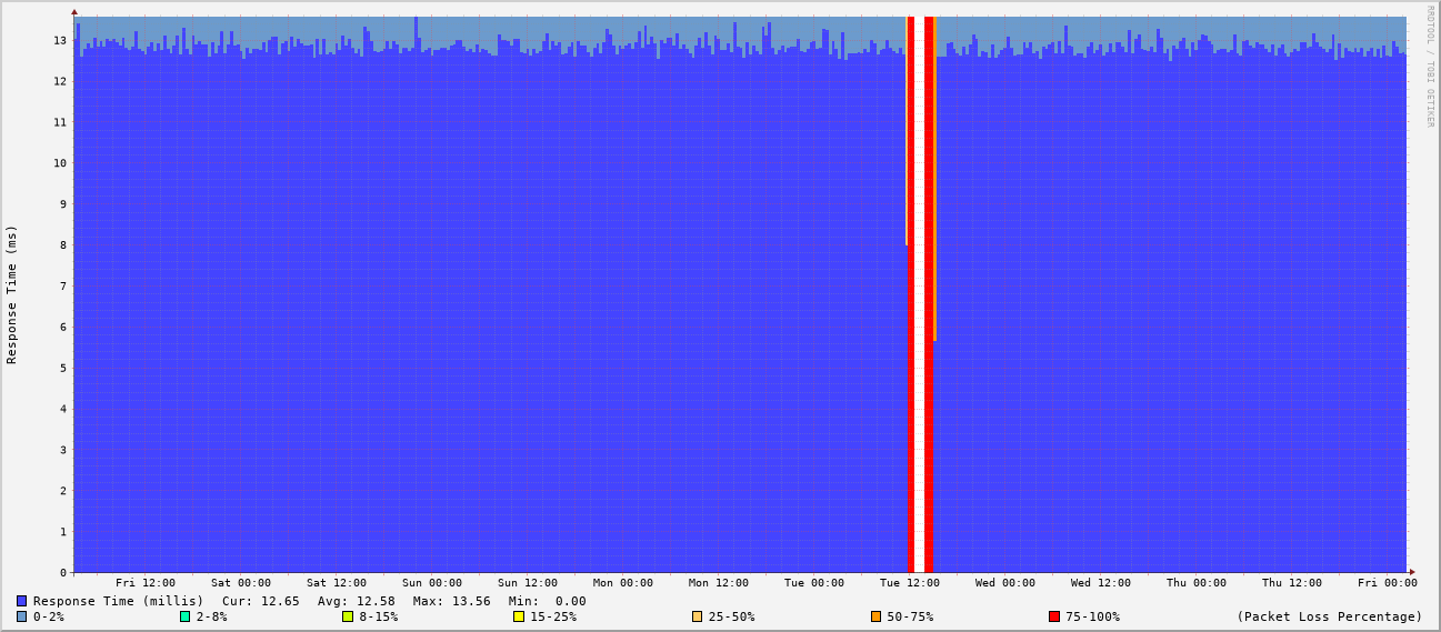 🇩🇪 116.203.32.217 Weekly Response Times & Loss Stats(5min average)